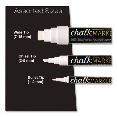 Unleash your creativity. Going beyond a low-mess alternative to board chalk, these versatile markers are perfect for a wide range of projects: artwork, signage, decorations and more. Featuring smooth-flowing ink and opaque pigments, Excello Global Products® Liquid Chalk Markers help you express yourself with precision and flair in bold, vivid...
