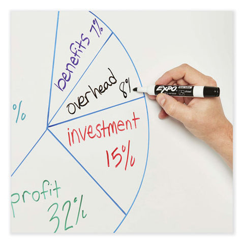 Create high impact marks and track, schedule and present clearly. High-quality ink-delivery system ensures consistent, skip-free results, while bold, vivid colors make it easy to see what's written from a distance. EXPO® Low-Odor Dry-Erase Markers always erase cleanly and easily from whiteboards and other non-porous surfaces such as porcelain, melamine...