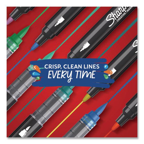 Bring your artistic vision to life with Sharpie Creative Markers! These acrylic markers feature stunning paint-like ink that glides across the page with the control of a marker. The water-based ink won't bleed through paper, so your work stays clean. The bright color markers create vibrant marks on light and dark surfaces and boldly mark on paper, metal, wood, ceramic, glass, rock and canvas. The colors beautifully layer to add dimension to your work. What's more, there's no need to prime these brush tip markers—simply uncap and go!