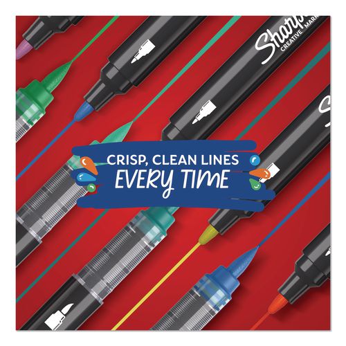 Bring your artistic vision to life with Sharpie Creative Markers! These acrylic markers feature stunning paint-like ink that glides across the page with the control of a marker. The water-based ink won't bleed through paper, so your work stays clean. The bright color markers create vibrant marks on light and dark surfaces and boldly mark on paper, metal, wood, ceramic, glass, rock and canvas. The colors beautifully layer to add dimension to your work. What's more, there's no need to prime these brush tip markers—simply uncap and go!