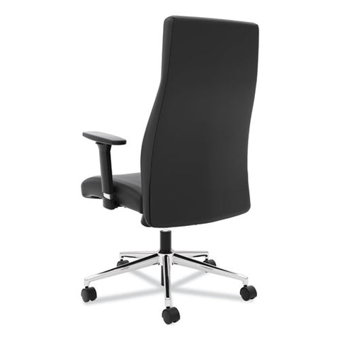 Adjustable Reactive Contoured Ergonomic Support, ARCHES, back health technology provides customized flexible kinetic lumbar support. SertaPedic® comfort support system with layers of molded foam, memory foam, and pocket coils. Upholstered in black commercial grade bonded leather. Pneumatic lift with tilt tension adjustment and lockout feature. Five-star nylon base with casters...