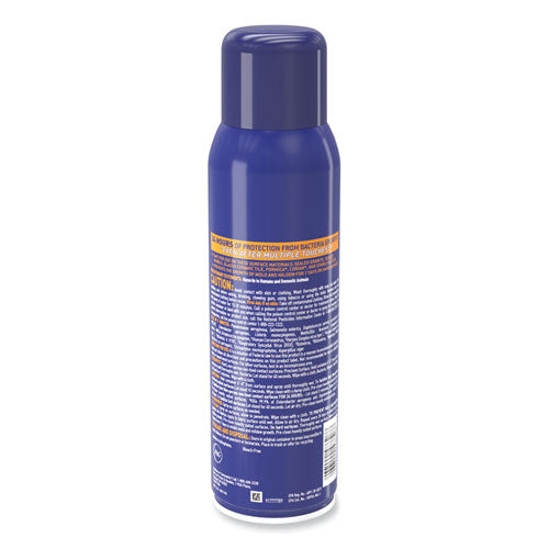 Microban 24 Hour Sanitizing Spray is an EPA registered aerosol sanitizer that provides up to 24-hour protection against Staphylococcus aureus and Enterobacter aerogenes bacteria on hard surfaces when used as directed. Featuring a light citrus scent, Microban Professional Sanitizing Spray sanitizes hard surfaces in as little as 10 seconds, killing 99.9% of bacteria in five minutes and protecting against bacteria growth touch after touch for 24 hours. This aerosol sanitizer spray is ideal for cleaning soft surfaces such as backpacks, luggage, curtains, cushions, mattresses and other fabrics. Microban's antimicrobial protection is effective against most common bacteria, mold and mildew that cause stains, odors and product degradation. It also helps fight the spread of germs and cold and flu viruses (Respiratory Syncytial Virus (RSV), Influenza A H1N1, Human Coronavirus) on hard, nonporous surfaces when used as directed.