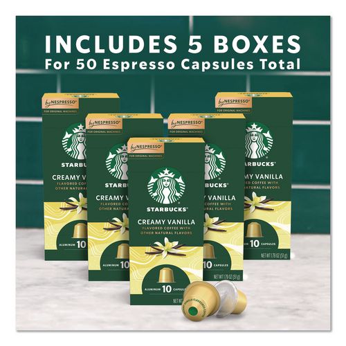 Enjoy the same high-quality Starbucks® coffee you know and love, now crafted as pods by Nespresso® for a premium experience at home. With notes of vanilla and sweet shortbread, this naturally flavored vanilla coffee is sure to make your morning cup that much sweeter.