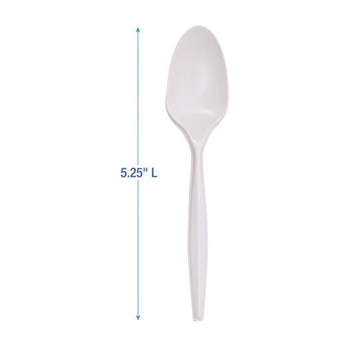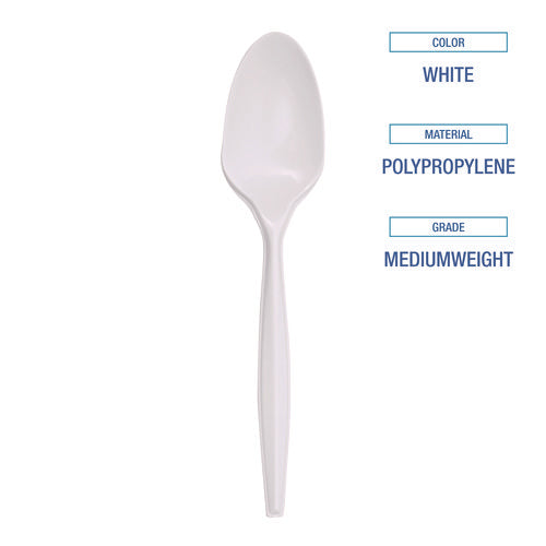 This mediumweight cutlery provides a sturdy, rigid utensil, that's ideal for barbecues, birthday parties, casual restaurants, offices, schools, cafeterias, events, and other culinary gatherings. Get the convenience of plastic cutlery, without the inconvenience of flimsy, lightweight products that break upon use. The simple, classic design and neutral colors fit seamlessly into any event decor. Polybagged for easy stocking and distributing to guests.