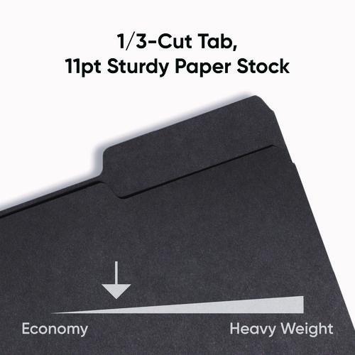 Interior File Folders, 1/3-cut Tabs: Assorted, Letter Size, 0.75" Expansion, Black/gray, 100/box