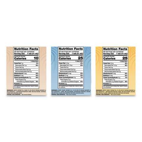 Delight your employees, customers and guests by offering liquid creamer in your workplace, breakroom or kitchen. Lactose-free, cholesterol-free, Kosher dairy and shelf-stable.Package Includes: (50) French Vanilla; (50) Hazelnut; (50) OriginalNote: This is a non-returnable item.
