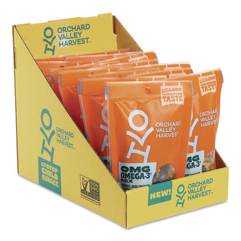 An Omega-3 wellness mix containing walnuts, dark chocolate blueberries, sweetened cranberries, almonds, and pistachios. Orchard Valley Harvest makes products that are delicious and nutritious. Simply enjoy the pure, wholesome goodness with every satisfying crunch! This tray pack display holds individually wrapped packs. The mix provides plant-based protein and is gluten...