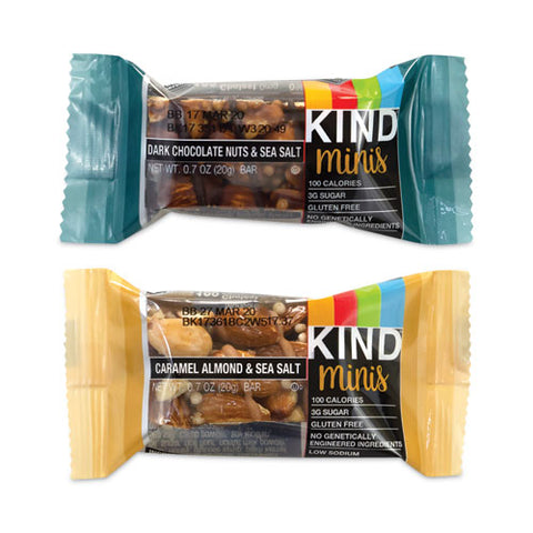 KIND Minis are mini versions of current Core Bar offerings. Portion control-half the size of full size Core Bar, only 100 or less calories. KIND products are made with nutritionally-dense ingredients like whole nuts, fruits and whole grains-no secret ingredients and no artificial flavors, preservatives or sweeteners. Nothing to hide....