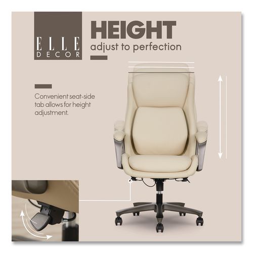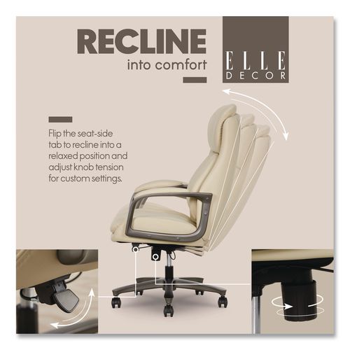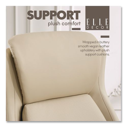 Sculptural elegance meets fashion-forward design with the ELLE Decor Rivendell Chair. Blending natural forms with contemporary sophistication, this piece redefines modern seating. Wrapped in a buttery-soft, vegan leather upholstery, it offers a sleek yet inviting aesthetic that exudes quiet luxury. Designed for style and indulgence, the chair features a lumbar pad with pivoting AIR Ergonomic Support Technology and plush padded cushions that cradle you in comfort. The polished base and arms add a refined, architectural touch, while the seamless height and recline adjustments ensure a tailored fit for any space. Whether in a chic home office or a creative retreat, the ELLE Decor Rivendell Chair is a statement piece that doesn't just complement your space, it elevates it.