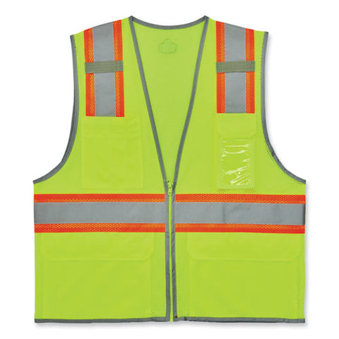 The GloWear 8246Z-S Mesh Two-Tone Hi-Vis Safety Vest is an ANSI 107 Type R, Class 2 vest made of 3.3oz polyester mesh. This hi-vis vest features 2" reflective tape set on a 3.5" contrasting mesh background and reflective piping for enhanced low-light visibility. Built for storage, this vest has two...