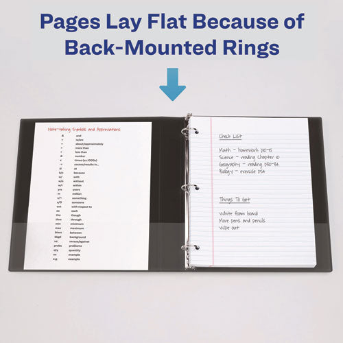 Now you don't have to choose between clever design and good looks. This Framed View Binder has both. Clean, elegant border on front panel perfectly frames and centers your title page for a professional look. Clear cover and spine inserts allow you to easily customize your binder using free, easy-to-use designs and templates from Avery® Design & Print (mounting sheets included). Two clear interior pockets and a business card pocket add to the professional image. Pages lie flat with back-mounted rings (exposed rivets on back). Wider front and back panels fully cover standard dividers and sheet protectors. In this binder, your presentation will get the attention it deserves.