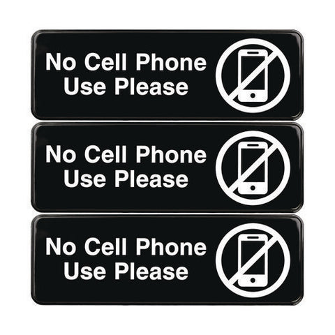 No Cell Phone Use Please Indoor/outdoor Wall Sign, 9 X 3, Black Face, White Graphics, 3/pack