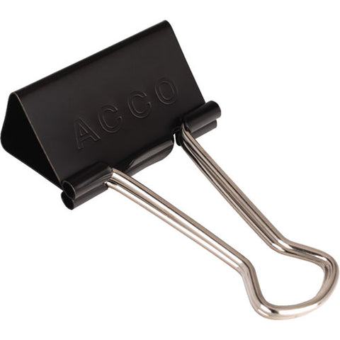 Reusable black binder clip with silver arms securely fastens stacks of paper. Tempered steel provides extra strong hold and clips spring back into shape when removed.