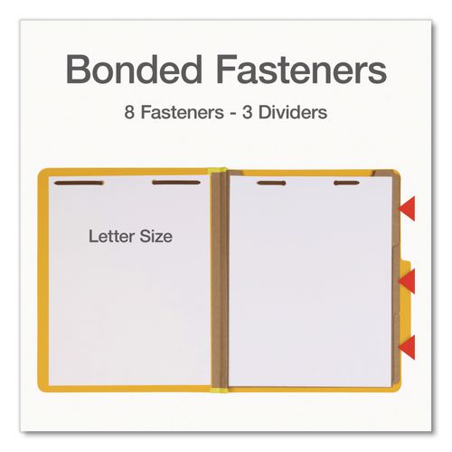 Heavy-duty Pressboard Classification Folder, 2/5-cut Tab, Expands 3", 3 Dividers, 8 Fasteners, Letter Size, Yellow, 10/box