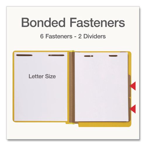 Heavy-duty Pressboard End Tab Classification Folders, Expands 2", 2 Dividers, 6 Fasteners, Letter Size, Yellow, 10/box