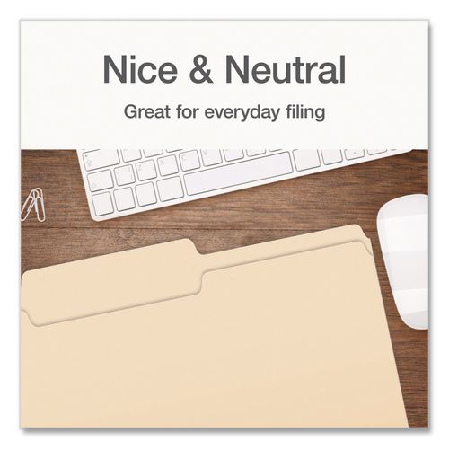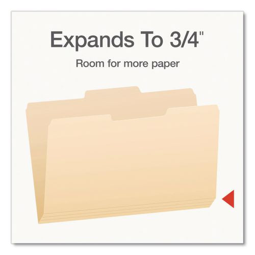 This office essential is scored above the fold for 0.75" expansion. Undercut at tab for increased indexing area. 11 pt. Manila stock.