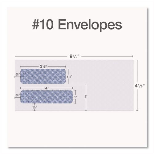 Window security tinted envelope with Reveal-N-Seal® self-seal closure is the ultimate in convenience and security. Self-seal closure alleviates the need to moisten flaps and to throw away pull-off strips. Simply fold bottom flap up and press for a secure seal! Window conveniently accommodates the printed address eliminating hand addressing.