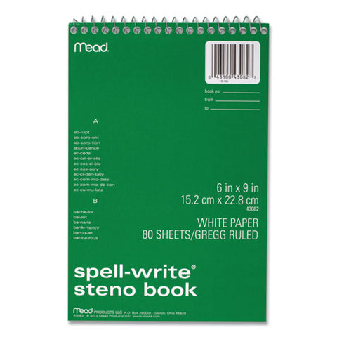 Spell-write Wirebound Steno Pad, Gregg Rule, Randomly Assorted Cover Colors, 80 Green 6 X 9 Sheets