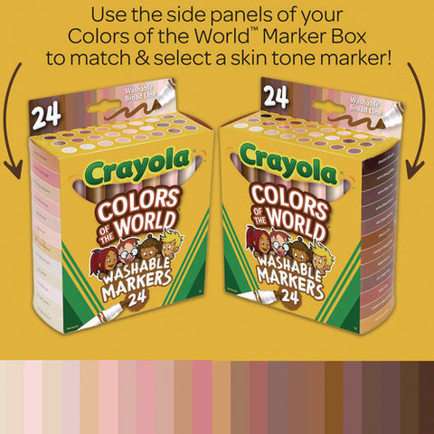 Crayola Colors of the World Markers contain 24 specially formulated colors representing people of the world. These washable skin tone markers are an exciting addition to your marker collection, making coloring pages and drawings even more detailed and realistic. The subtle shades inside are formulated to better represent the growing...