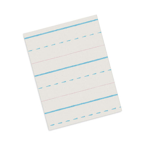 Rulings conform to Zaner-Bloser™ and/or D'Nealian™ handwriting programs. Bright tablet paper ruled on both sides with red baselines, blue dotted midlines and blue headlines.