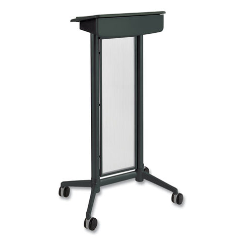 The Impromptu Lectern is a workspace podium built from a steel frame and translucent polycarbonate panel. The presentation stand is mobile on four swivel wheels (two locking). Complements entire Impromptu line of products.Note: This is a non-returnable item.