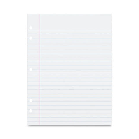 Loose leaf filler paper. Three-hole punched to fit in standard binders. Ruled to keep handwriting neat and organized. Processed chlorine-free. Acid-free.