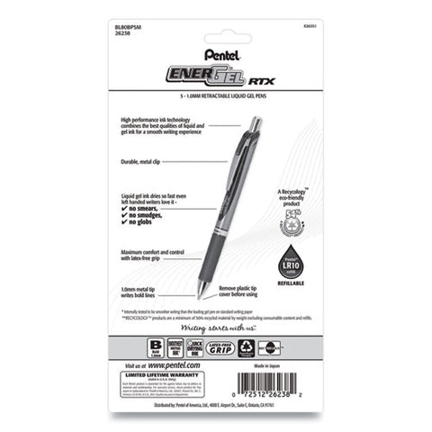 Make your everyday writing tasks more enjoyable with Pentel® EnerGel® RTX Retractable Liquid Gel Pens. High performance ink technology combines the best qualities of liquid and gel ink for a super-smooth writing experience, and its quick-dry qualities make it ideal for left handers: No Smears, No Smudges, No Globs. Its...