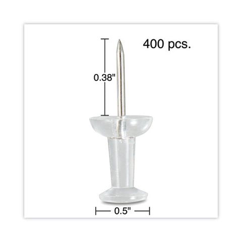 Clear plastic head allows you to tack up important documents and posters without unwanted visual distractions. Steel pin glides right into even the toughest surfaces: drywall, plaster and mat-board as well as cork and foam.