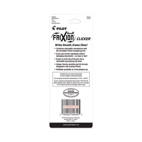FriXion Clicker combines the convenience of a retractable with amazing erasable gel ink. Pilot® FriXion gel ink pens allow you to write, erase and rewrite without damaging documents or leaving behind messy eraser crumbs. The unique, thermo-sensitive gel ink formula offers vibrant color and smooth writing.