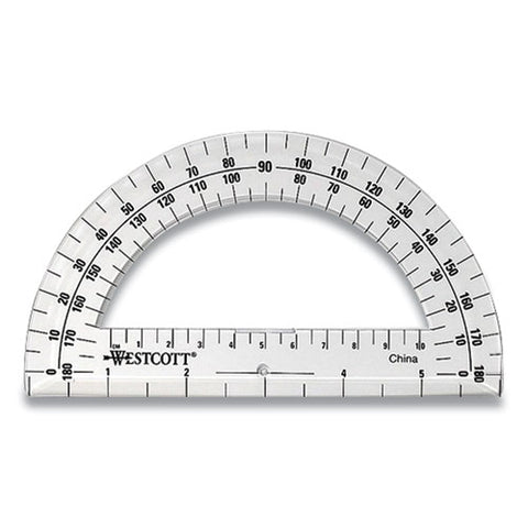 Clear plastic protractor is ideal for all young mathematicians. Protractor features an open center. Students will easily be able to identify angles from 0 to 180 degrees with the protractors sharply defined graduations which is easy to read and helps minimize visual errors.