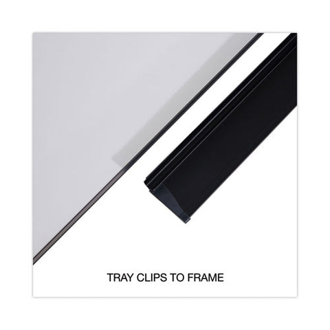 Modern dry erase board with sleek black, heavy-duty frame. Smooth writing surface that's ideal for personal work areas to help keep schedules and tasks organized. Versatile board with four, rounded corners enables vertical and horizontal mounting with included hardware. Board wipes clean every time wipes clean with cloth, eraser, or...