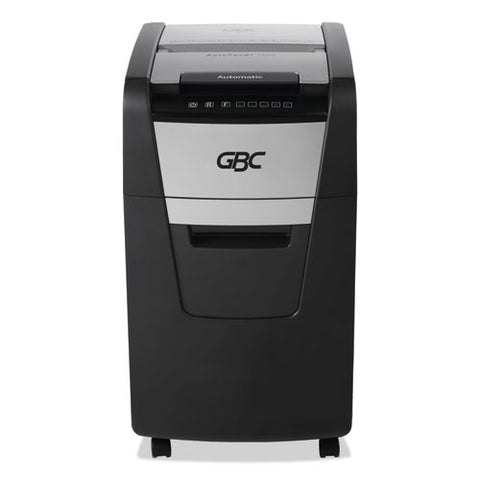 Spend less time shredding and more time on other tasks. GBC® AutoFeed+ Shredders take the manual work out of shredding to make your day easier. Simply stack, shut and walk away! Stack up to 150 sheets in the feeder for automatic shredding or manually feed up to eight sheets at once. Micro-cut (P-4) shred style is perfect for shredding confidential or personal information. Runs ultra-quietly to help minimize noisy disruptions in your home office. Powerful induction motor with 30 min continuous run time and huge 11.6 gal bin let you shred longer without stopping. Auto forward and reverse functions help prevent jams. Auto shreds documents, paper clips and staples, while credit cards must be manually inserted.