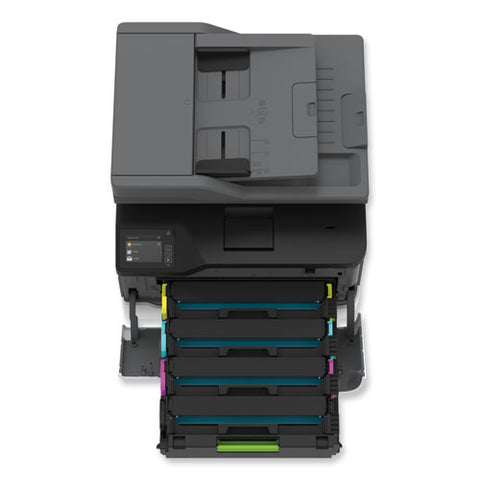 Small workgroup color versatility is easy to deploy and share with the compact, lightweight Lexmark CX431adw multifunction. Built for reliability, performance and security, it offers lifetime imaging components, output at up to 26 ppm, scanning at up to 96 images per minute and Lexmark’s exclusive full-spectrum security. With replacement Unison™ Extra High Yield toner plus media input expandable up to 751 pages, you can print more and stop less. Connect users via USB, Gigabit Ethernet, or Wi-Fi, and take control of a 2.8" color touch screen offering built-in cloud connectors for Box, DropBox, Google Drive, and Microsoft OneDrive.