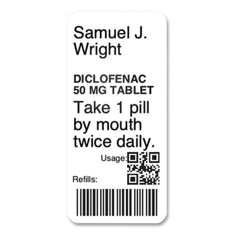 Lw Durable Labels, Medical Prescription Label, 1" X 2.13", White, 500 Labels/roll