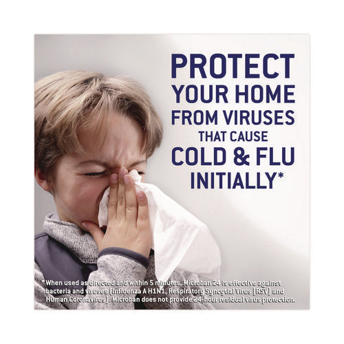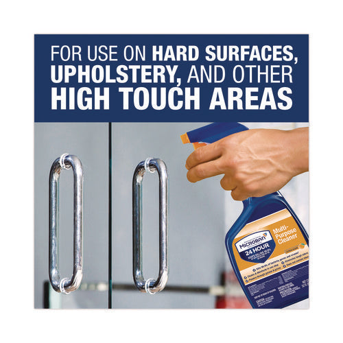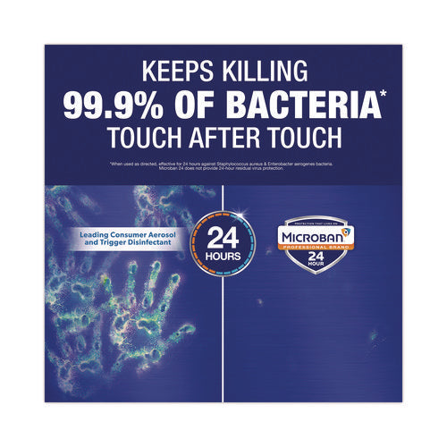 Microban Professional 24 Hour Multi-Purpose Cleaner is an EPA registered 1-step cleaner, disinfectant and sanitizer that provides up to 24-hour protection against Staphylococcus aureus and Enterobacter aerogenes bacteria on hard surfaces when used as directed. Microban Ready-to-Use Multipurpose Cleaner initially kills 99.9% of bacteria in five minutes, and keeps protecting against bacteria growth touch after touch for 24 hours. It also helps fight the spread of germs and cold & flu viruses (Respiratory Syncytial Virus (RSV), Influenza A H1N1, Human Coronavirus).