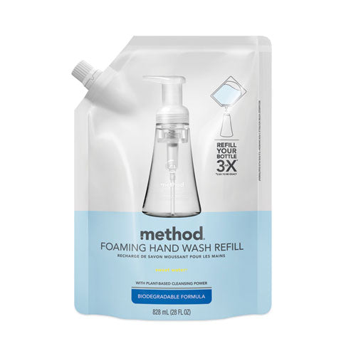 - Tags: 0, 28-oz, b, clear, cradle-to-cradle-certified™-silver, cruelty-free-tested-on-people, foam, foam-soap-refills, grapefruit-and-lemon-leaves-wrapped-in-watery-petals-of-star-jasmine-and-lily-of-the-valley, hand, method®-foaming-hand-pumps, n, not-on-animals, plastic-pouch, soaps-dispensers, sweet-water