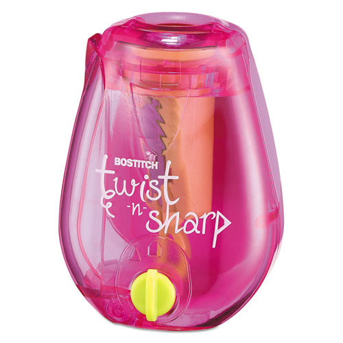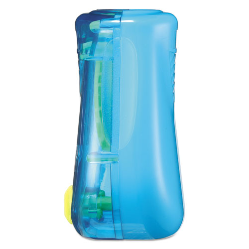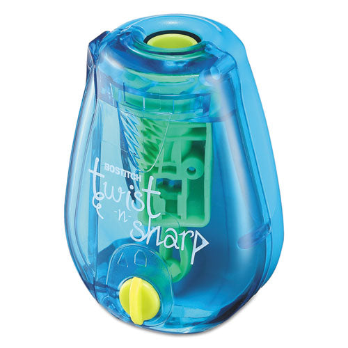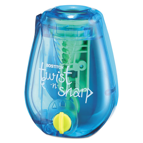 A fun and stylish design with an innovative ratchet mechanism for fast and easy sharpening -- perfect for school, work or home. Sturdy, compact, handheld sharpener safely and conveniently travels in any school bag or pencil case. Adjustment knob makes it easy to choose a sharp or a blunt tip based on your preferences. Tip Saver™ technology prevents over-sharpening, extending the pencil's life. Internal shavings receptacle captures loose pencil shavings to eliminate messes. Flip-down side door allows for quick shavings disposal. Color-pencil compatible.